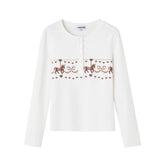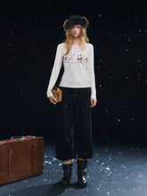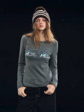 A playful yet refined top featuring a whimsical carousel-inspired print and a soft, plush-touch texture. Designed with a slim, flattering silhouette, this piece offers a cozy feel while maintaining a clean, feminine shape. The gentle stretch enhances comfort and ease of movement, making it an ideal choice for everyday wear in autumn and winter—perfect worn on its own or layered under jackets and coats.