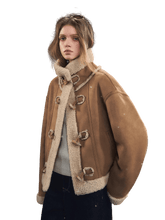 A cozy sherpa jacket featuring classic horn-button detailing and a plush, lambswool-inspired texture. Designed with a relaxed silhouette for effortless layering, this piece delivers both warmth and structure. The soft fleece interior and clean exterior paneling create a refined yet comforting look, perfect for casual winter styling or elevated everyday wear.
