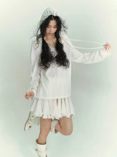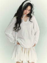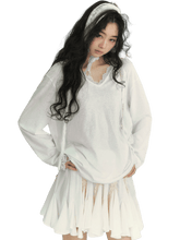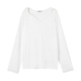 This hooded sweatshirt blends casual comfort with feminine detailing, featuring delicate lace paneling contrasted with a relaxed silhouette. Designed with flowing ribbon tie accents and a soft drape, it brings a romantic edge to a sporty staple. The loose fit, dropped shoulders, and lightweight construction make it ideal for layering, while maintaining an effortlessly chic, modern aesthetic.
