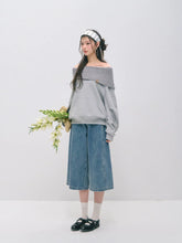 Off-Shoulder Panelled Relaxed Pullover Sweatshirt