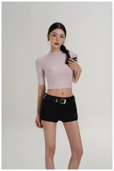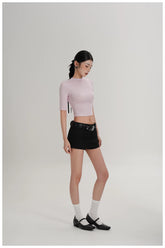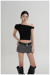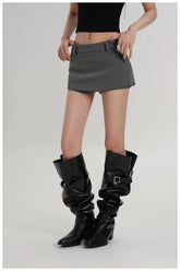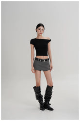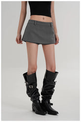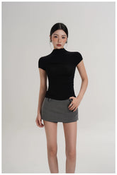 This sleek skort combines the elegance of a mini skirt with the practicality of built-in shorts for added coverage and comfort. Designed with a clean, straight silhouette, it features a flattering high-waist fit and a discreet side zipper for easy wear. The structured yet flexible fabric enhances shape while allowing movement, making it an ideal choice for everyday styling or elevated casual looks.