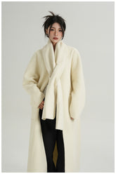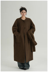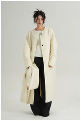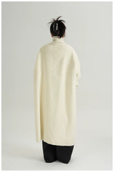 A statement cape-style long coat designed with an oversized, relaxed silhouette that delivers effortless elegance and a strong sense of luxury. Crafted from pure double-faced wool, this piece features broad shoulders, generous volume, and clean minimal lines, creating a fluid drape that flatters while allowing comfortable layering. The refined cape construction elevates everyday winter styling, making it a timeless outerwear essential for autumn and winter wardrobes.
