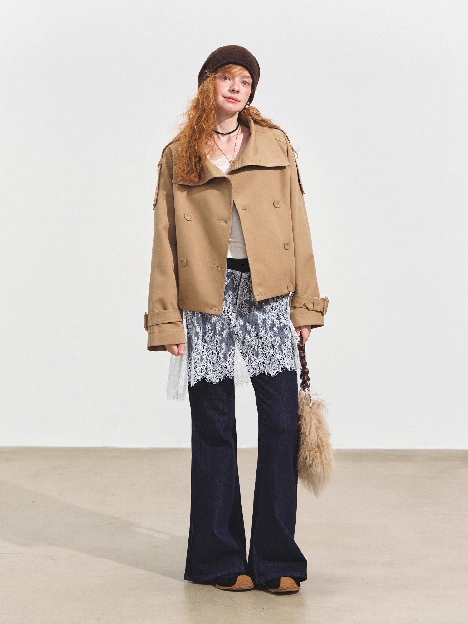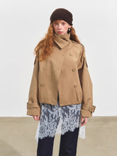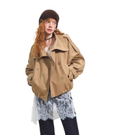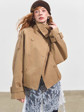 Stand Collar Double-Breasted Cropped Trench Coat - CHINASQUAD