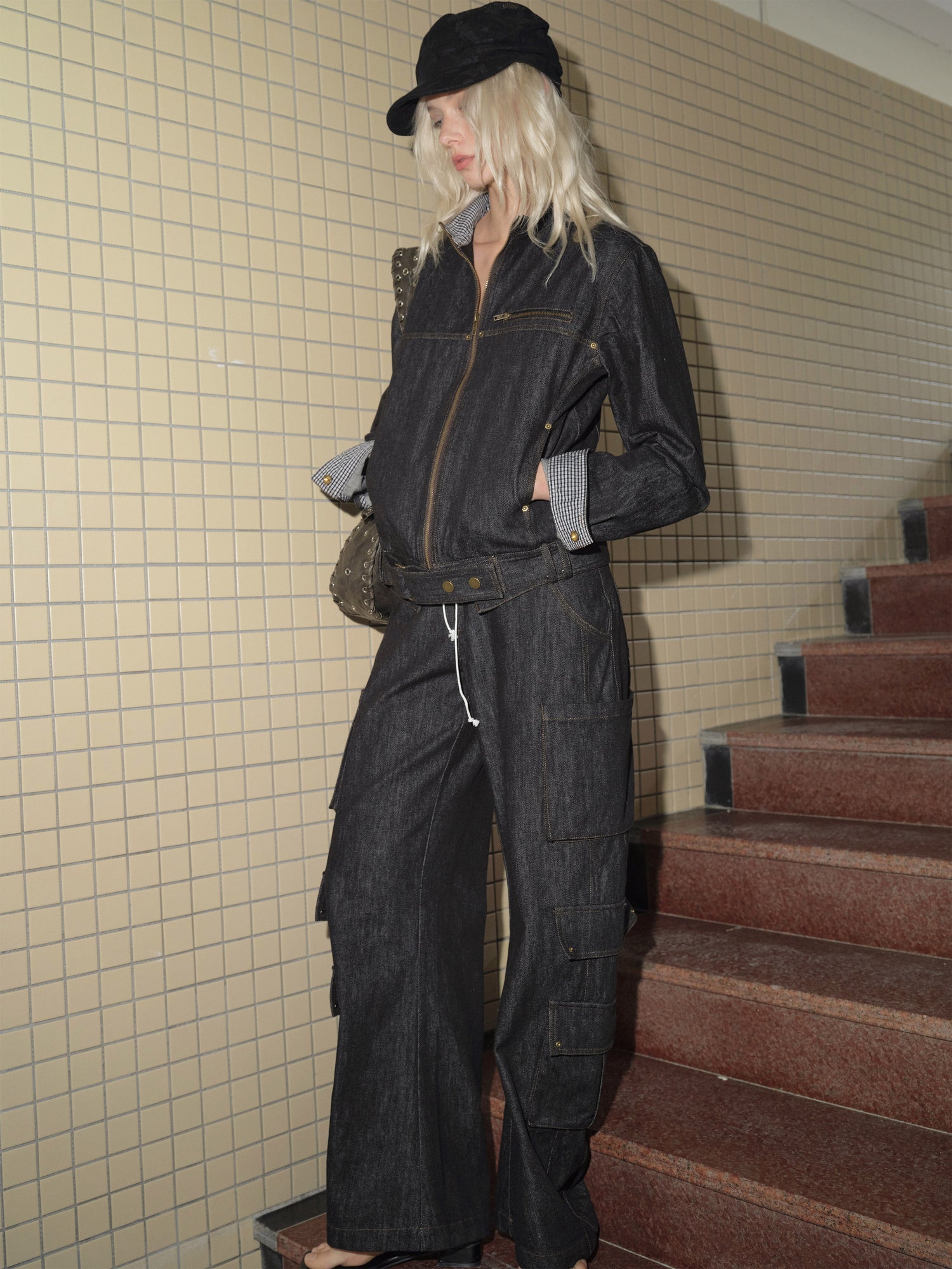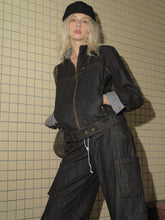 This statement denim jacket blends vintage aesthetics with modern workwear influences, featuring a bold contrast patchwork design. The structured stand collar adds a retro touch, while the relaxed silhouette ensures a comfortable and effortlessly stylish fit. Thoughtful details, such as the checkered inner collar lining, adjustable hem straps, and contrasting inner cuffs, enhance both functionality and visual appeal. Crafted from high-quality denim, this jacket offers durability and a timeless edge, making it a versatile outerwear piece for casual and streetwear-inspired looks.
