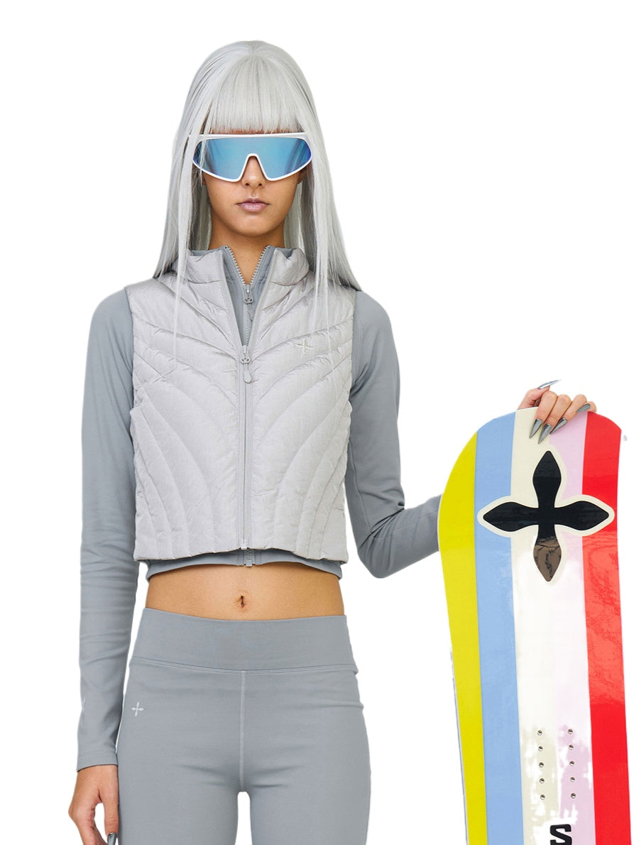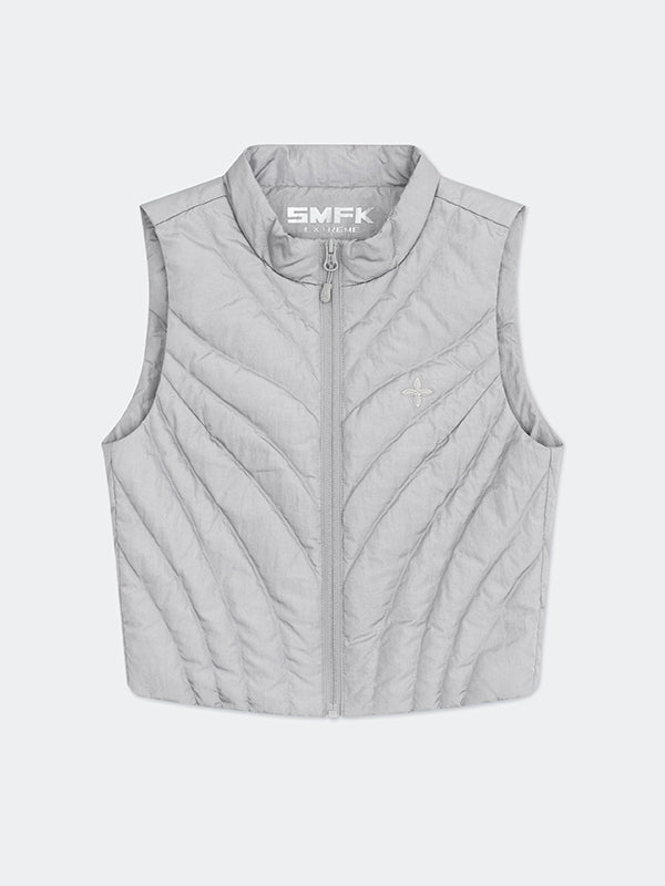 The SMFK 2024 outdoor sports vest is designed with Wave quilting for a slim fit and filled with 85% white duck down, offering a sculpted silhouette. Lightweight padding ensures warmth and flexibility for outdoor activities, with sleek aesthetics perfect for winter sports.