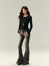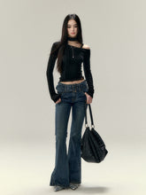 These stretch flared jeans bring a modern twist to classic denim with a flattering fit-and-flare silhouette. The multi-hole waist design adds a bold visual element, perfect for versatile styling. The unique distressed details and stretchy material ensure comfort while maintaining a retro yet chic aesthetic. Pair these jeans with casual or formal tops for a stylish look.
