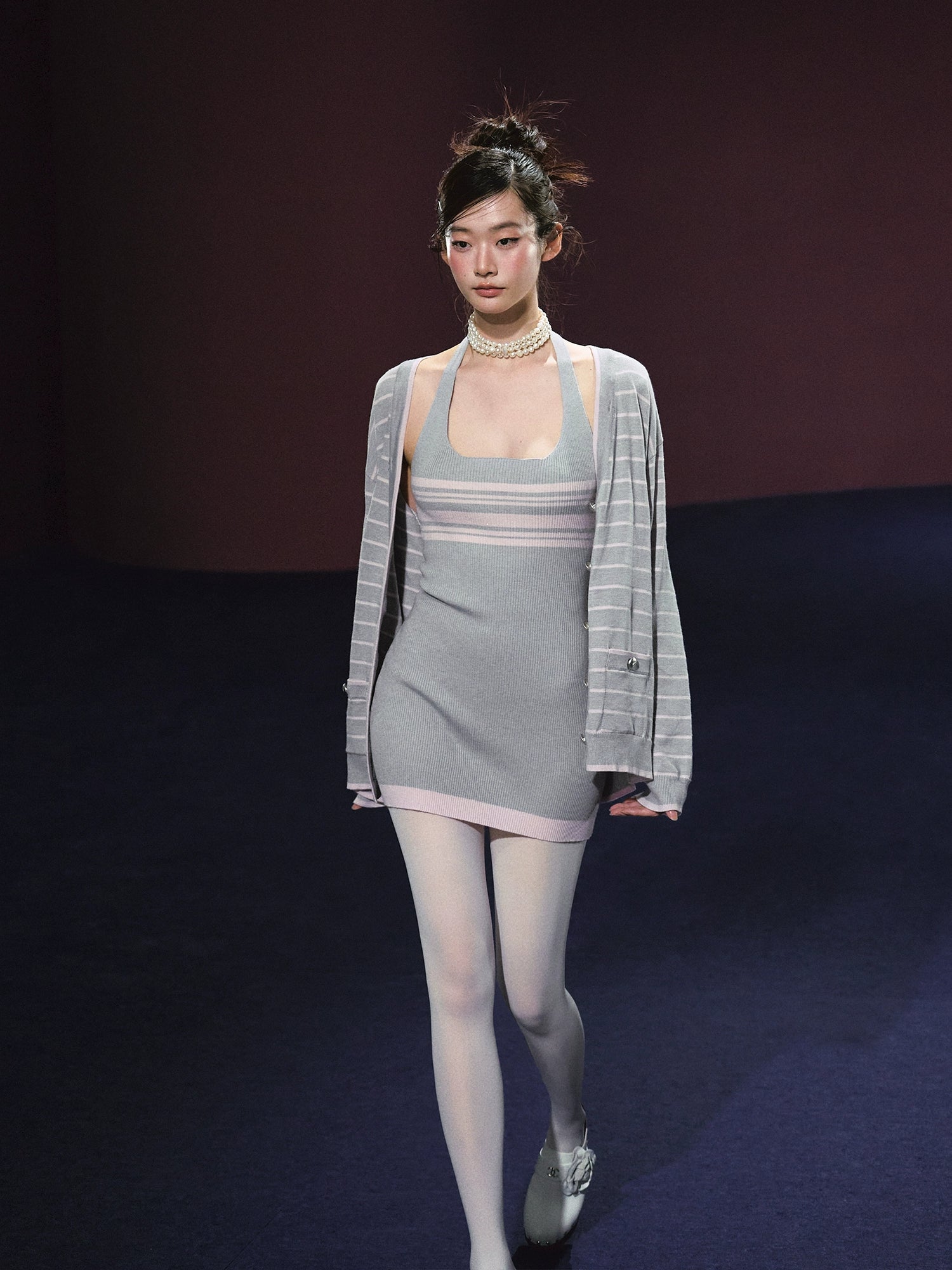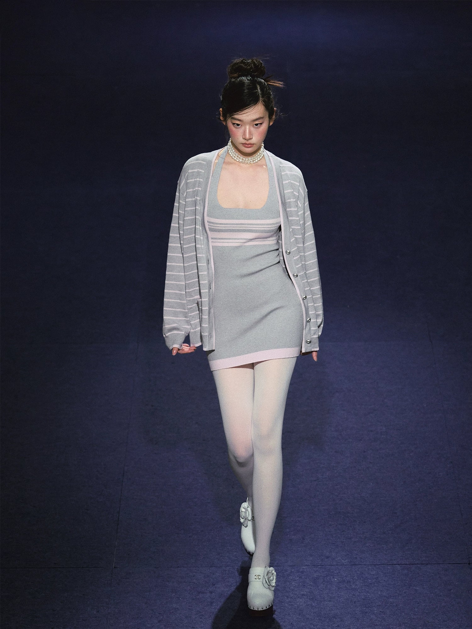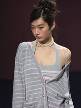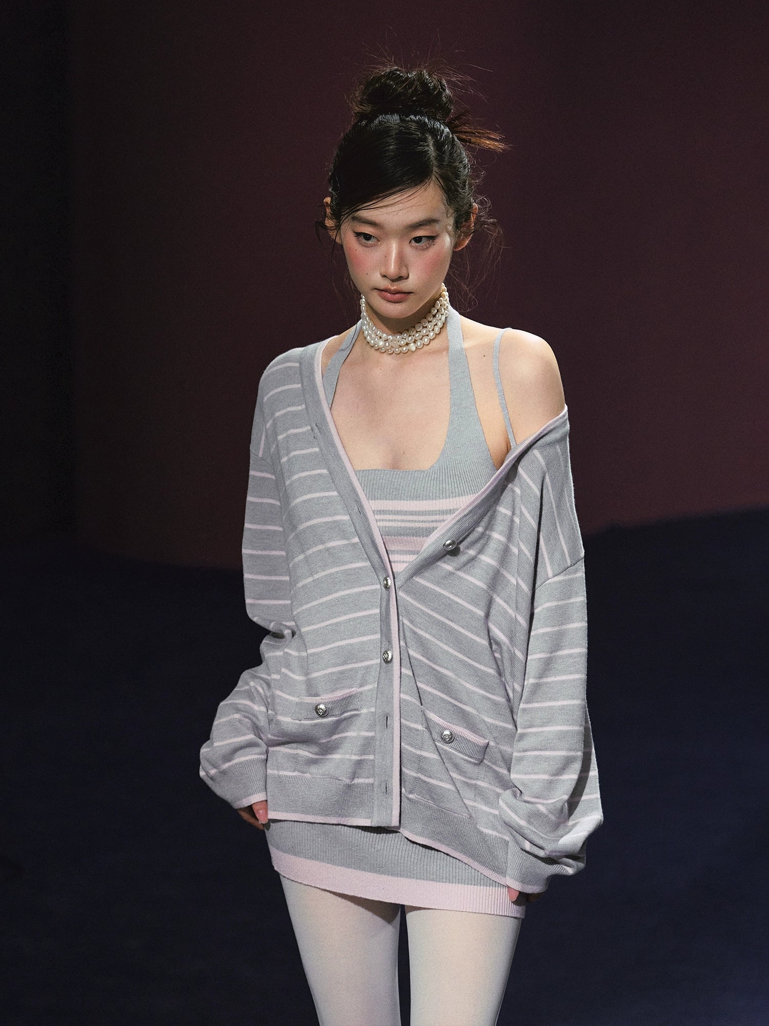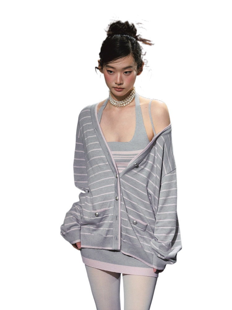 Striped Contrast Cardigan & Tank Dress Set - CHINASQUAD