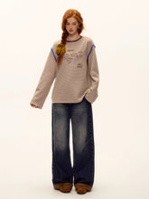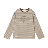 A stylish and youthful round-neck T-shirt featuring contrast stripes and delicate shell embroidery with textured grain stitching. Crafted from a soft cotton-viscose blend, it offers a relaxed, comfortable fit while maintaining a refined casual aesthetic. The playful yet sophisticated details make it a versatile piece for effortless everyday styling.
