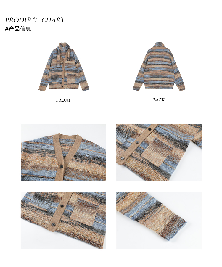 Striped Knit Cardigan & Scarf Set - CHINASQUAD