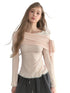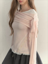 This elegant off-shoulder top combines refined femininity with modern romantic charm. Designed with an asymmetric neckline that subtly reveals the collarbone, it enhances the silhouette with effortless grace. The statement bow-tie shoulder detail adds a touch of whimsy and depth, breaking away from conventional design symmetry. Crafted from premium cotton-blend fabric with a delicate sheen and smooth hand feel, it offers both structure and comfort. The same-tone pearl buttons and satin floral trims highlight exquisite craftsmanship. Lightweight yet substantial, this piece transitions seamlessly from brunch dates to afternoon teas or spring picnics — versatile, graceful, and timelessly chic.