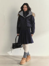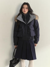 Glacier Blue & Navy Plaid Panel Down Jacket
