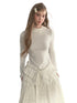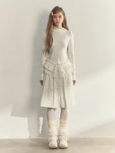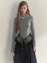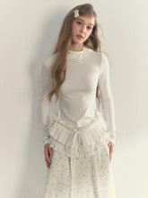 This elegant mock-neck long-sleeve top combines soft knit comfort with refined layered design, creating a delicate and romantic aesthetic. Made from a premium cotton-blend fabric, it offers a skin-friendly touch and fluid drape, ensuring comfort without compromising structure. The relaxed turnover collar adorned with lace-like trim adds a graceful French charm, while the subtle ruffle edges highlight femininity. The dual-layer pleated hem enhances the overall silhouette with rich texture and dimension, exuding quiet sophistication. Finished with pearl-like buttons and meticulous stitching, it balances simplicity and detail beautifully. Perfect for pairing with skirts or trousers, it transitions seamlessly from casual to semi-formal looks, showcasing effortless layered elegance.