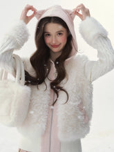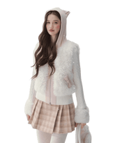This vintage-inspired outerwear piece from SunsetPark features playful cat-ear detailing combined with eco-fur and knit patchwork construction. Designed to deliver both warmth and charm, the silhouette balances a cozy, retro aesthetic with refined structure. The soft textures and thoughtful material contrasts create a sweet yet sophisticated look, making it an ideal statement jacket for autumn and winter styling.