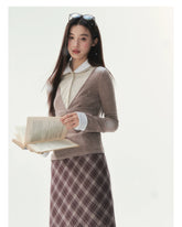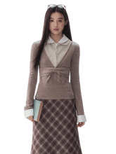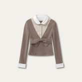 Designed for early spring, this original SunsetPark piece features a retro-inspired Peter Pan collar with a faux layered (two-in-one) construction. Blending soft, feminine textures with classic tailoring, the design creates the look of coordinated layers in a single garment. The slim, refined silhouette pairs beautifully with skirts or trousers, delivering a nostalgic yet polished aesthetic ideal for transitional styling.