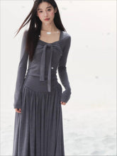 Designed for spring layering, this retro-inspired knit dress features a softly cinched waist that enhances the silhouette while maintaining a refined, understated elegance. The heather grey tone evokes a calm, vintage mood, while the slim, elongated cut makes it ideal as an inner layer or worn alone for a clean, feminine look. Subtle knit texture adds depth and comfort, making it a timeless wardrobe essential for transitional seasons.