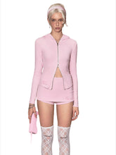 Knit Hoodie Jacket & Skirt-Shorts Set