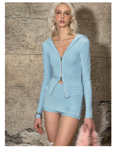Modal Stretch Zip-Up Hoodie & Faux Skirt Set