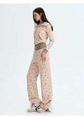 An original two-piece set featuring a cozy sweatshirt paired with matching jogger pants, designed with a playful puppy print for a youthful, relaxed aesthetic. The sweatshirt offers a comfortable regular fit with clean shoulder lines and a balanced length, making it easy to wear on its own or layered. The joggers are cut with a relaxed straight-leg silhouette, providing ease of movement while maintaining a neat, structured look. Crafted from a thickened cotton-blend fabric, this set delivers warmth and softness, perfect for everyday casual wear, lounging, or laid-back street styling.
