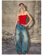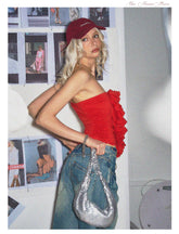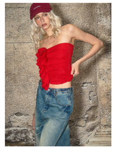A bold summer-ready bandeau top designed with a sculptural floral detail and textured ruching for a striking, feminine silhouette. This shoulder-baring cropped piece hugs the body with a slim fit, highlighting the neckline and waist while delivering a confident sweet-and-spicy aesthetic. Ideal for warm-weather styling, it works effortlessly as a statement top paired with skirts, denim, or layered looks.