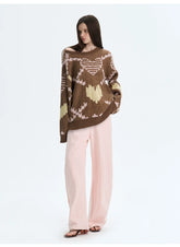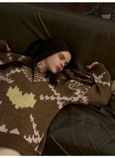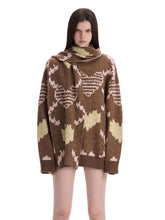 A coordinated knit set featuring a relaxed-fit sweater paired with a matching scarf, inspired by retro pixel-style jacquard patterns. The sweater is designed with a comfortable, slightly oversized silhouette that offers effortless layering and everyday versatility. Clean shoulder lines and balanced proportions create a laid-back yet polished look. The matching knit scarf completes the set with cohesive texture and warmth, making it an easy statement for fall and winter styling. The overall aesthetic blends vintage charm with modern wearability, perfect for casual, cozy outfits.