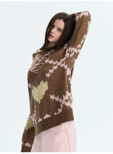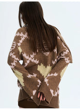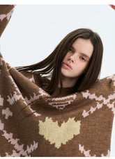 Retro Pixel Jacquard Knit Sweater & Scarf Set