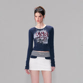 A retro-inspired layered top set designed for a bold yet refined silhouette. Featuring a fitted long sleeve T-shirt paired with a coordinating camisole, this set delivers a modern layered aesthetic with minimal effort. The slim-cut design contours the body, while the vintage-inspired print adds character and depth. Crafted from a soft, breathable stretch fabric, it ensures comfort while enhancing the natural shape—perfect for everyday styling with a statement edge.