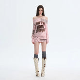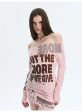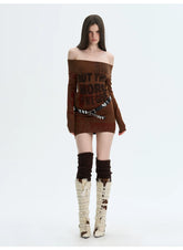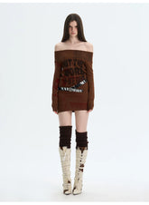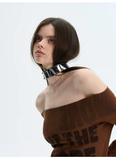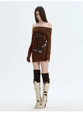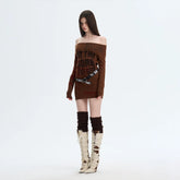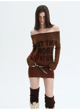 A retro-inspired knitted dress designed for versatile styling, featuring a refined silhouette that can be worn alone or layered. The softly structured fit highlights the body’s natural curves with a subtle stretch, while the elegant off-shoulder neckline adds a feminine, romantic touch. Long sleeves balance the look, making it suitable for transitional seasons. The vintage-style print enhances the nostalgic mood, creating a statement piece that feels both artistic and wearable.