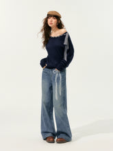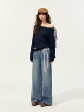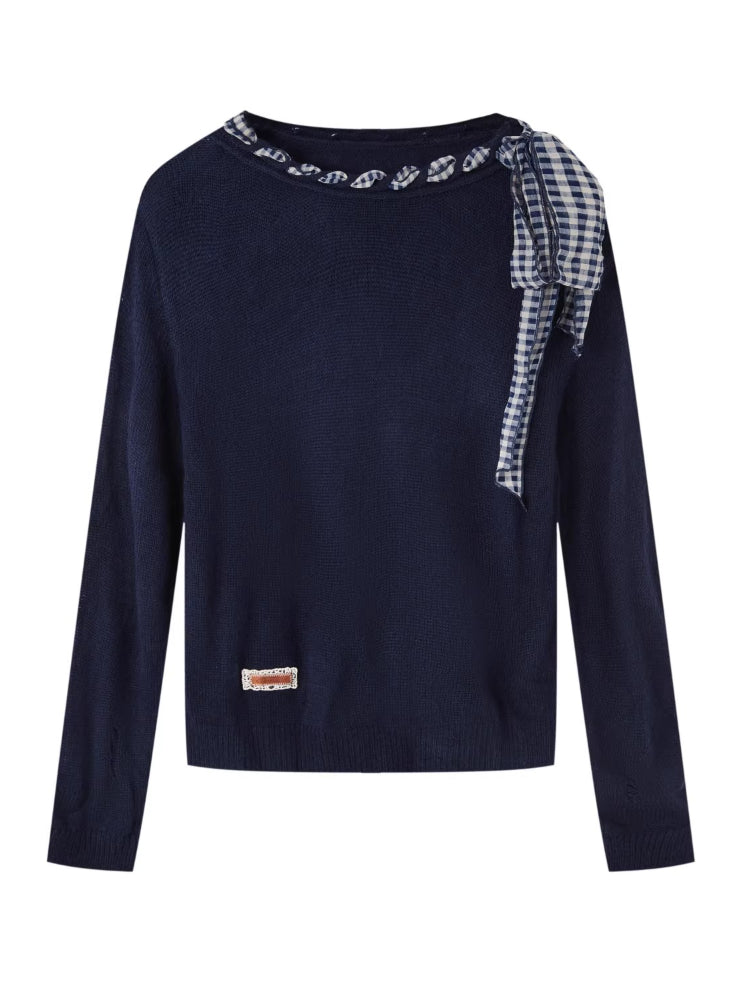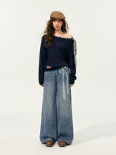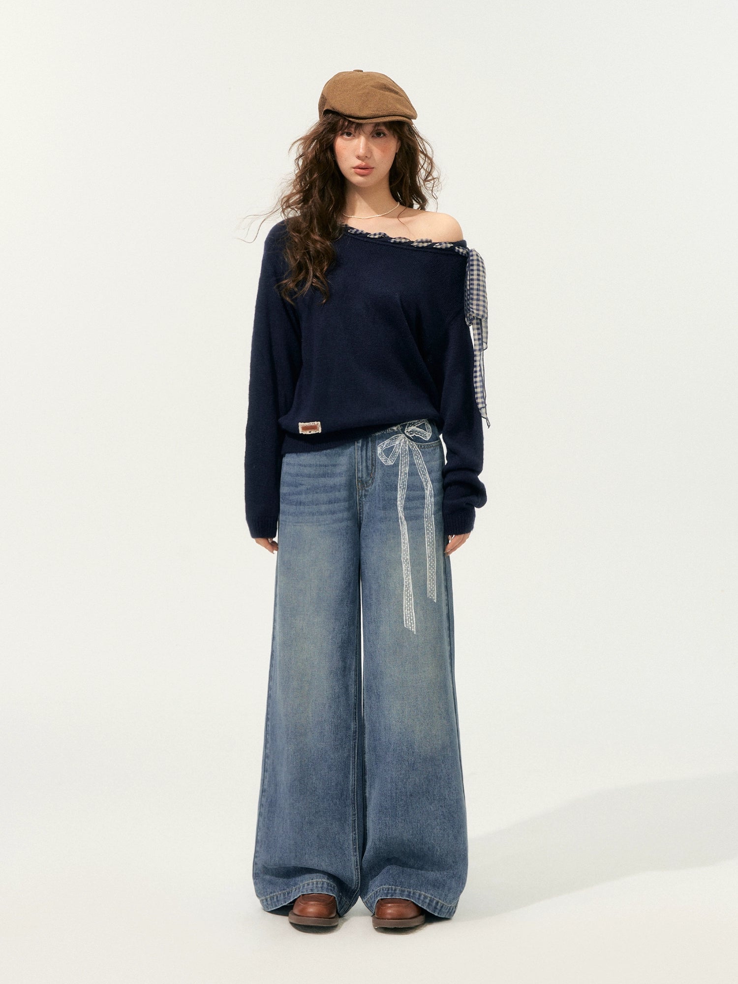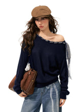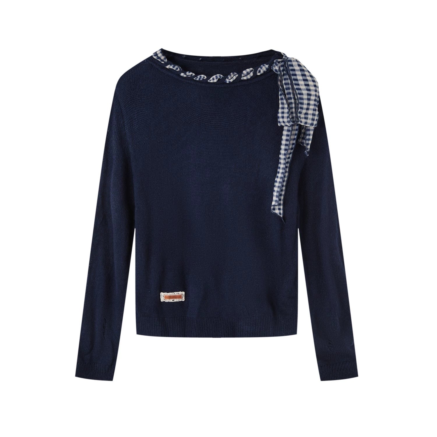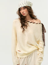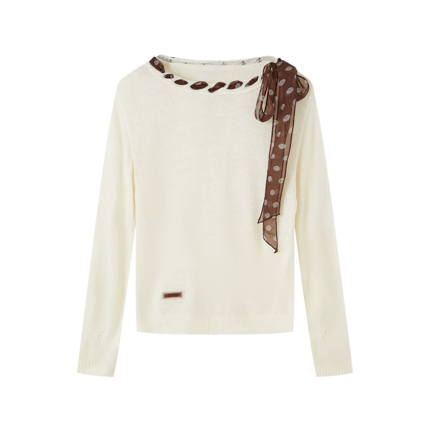Tie-Up Off-Shoulder Knit Crewneck - CHINASQUAD
