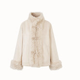 Warm, soft, and irresistibly chic — the “Travel Plan” jacket combines vintage charm with modern practicality. Made from plush shearling-effect fabric with a leather-and-fleece integrated design, it offers luxurious warmth and a velvety hand feel. The structured stand collar and clean tailoring enhance its sophisticated silhouette, while the cozy lining ensures maximum comfort. Perfect for winter adventures or city strolls, it balances timeless elegance with effortless wearability.