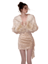 This autumn–winter two-piece set delivers a glamorous vintage mood with a luxurious edge. The look pairs a champagne rose–toned sequin velvet bodycon dress with a soft faux mink fur outer layer, creating a striking contrast of shimmer and texture. The fitted velvet dress hugs the curves with a flattering, high-stretch silhouette, while the plush faux fur coat adds warmth and retro elegance. Designed for standout occasions, this set blends old-money glamour with modern femininity, perfect for evening wear, parties, and statement winter styling.