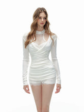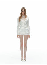 This refined three-piece autumn set features a delicate halter-neck lace camisole, paired with tailored slim-fit shorts and a lightweight pleated sheer cardigan. Designed with a balance of femininity and structure, the halter top highlights the neckline with subtle lace detailing, while the fitted shorts sculpt a clean, modern silhouette. The pleated outer layer adds dimension and elegance, making the set suitable for both standalone styling and layered looks. Ideal for transitional seasons, this ensemble delivers a polished yet effortless aesthetic.