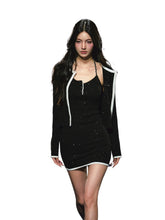 Tweed Galaxy Shimmer Chain Halter Dress & Cardigan Set - CHINASQUAD