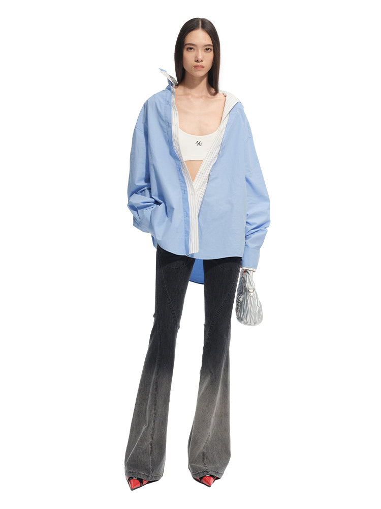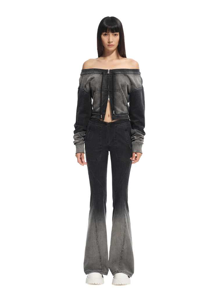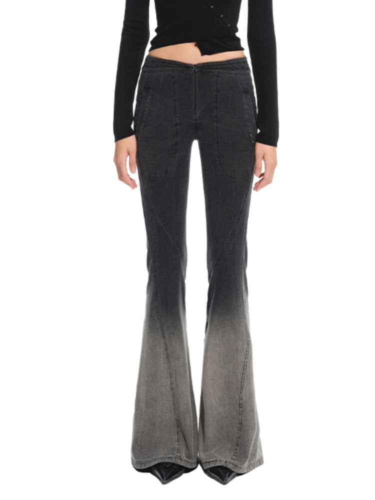 Twill Washed V-Waist Stretch Micro-flare Pants - CHINASQUAD