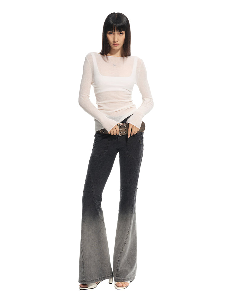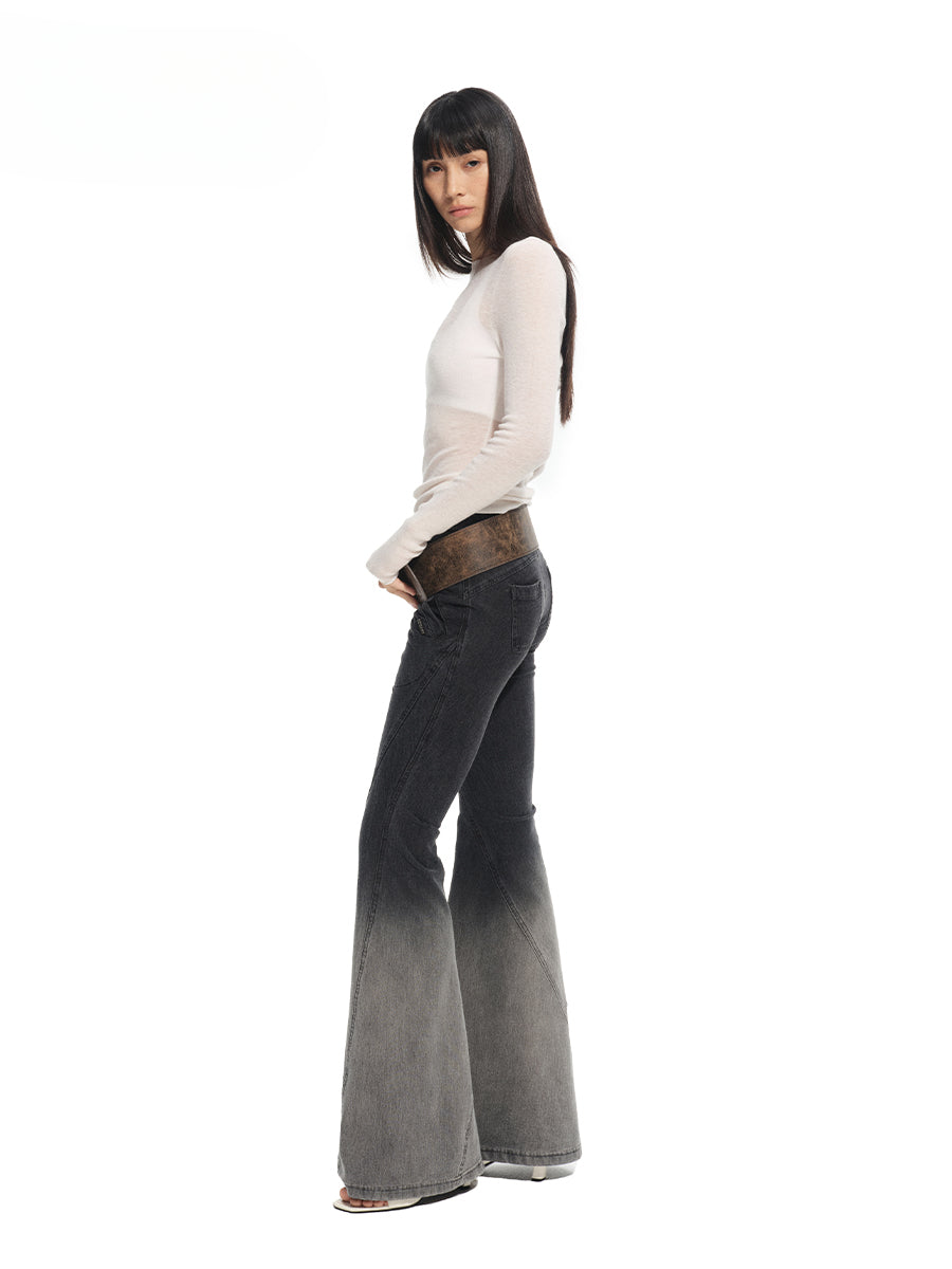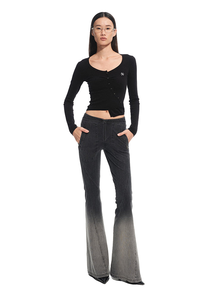 Twill Washed V-Waist Stretch Micro-flare Pants