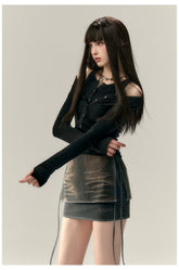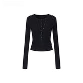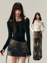 The half-button neckline design breaks visual monotony, offering versatility for pairing with bottoms to enhance a slender silhouette.A backless and long-sleeve two-piece reconstruction highlights its unique layered appearance.