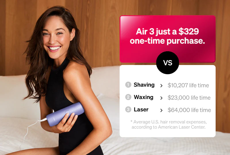 IPL is a clinically-backed method for long-term hair removal. Air 3 is FDA cleared, expert backed, clinically tested and complys with international regulation standards. It’s safe, effective, and convenient.