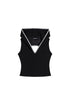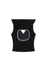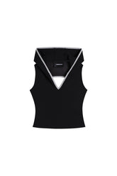 V-Cutout Hooded Sleeveless Trim Top In Black