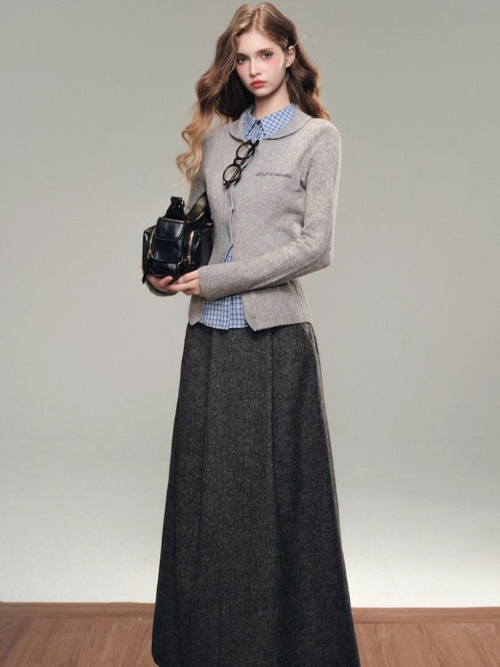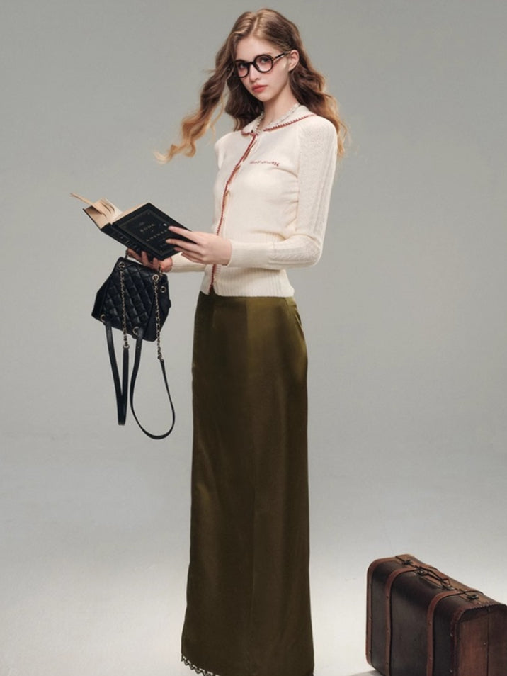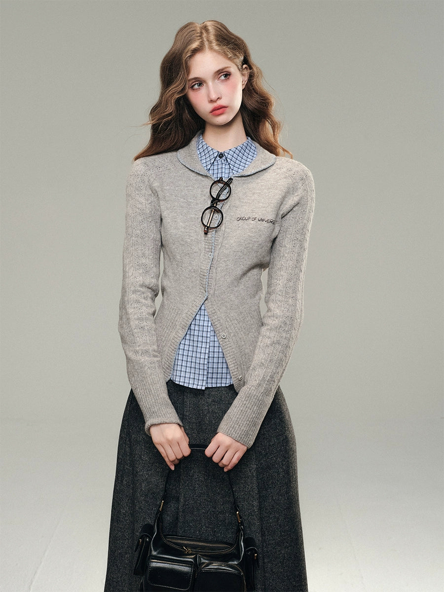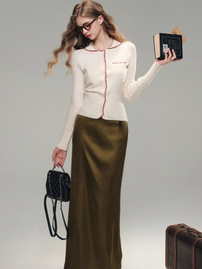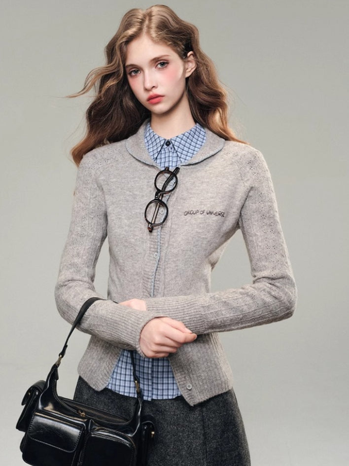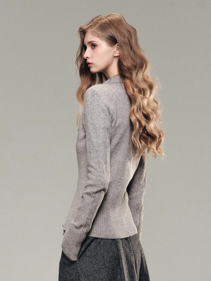 This elegant hand-knit V-neck cardigan features a contrast design, combining a soft and durable fabric blend of silk wool, nylon, spandex, and acrylic. Perfect for both formal and casual occasions.