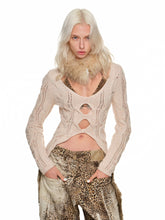 V-Neck Hollow Cable Knit Sweater