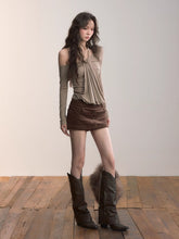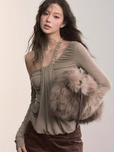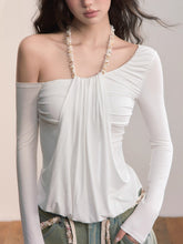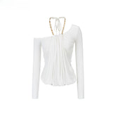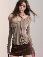 A statement asymmetric knit top combining sensuality and structure. Crafted from soft, eco-friendly modal-blend fabric with a silky touch, it features a draped halter neckline and a faux double-layer construction that creates sculptural folds and visual depth. The off-shoulder cut elegantly exposes the collarbones, while the high elasticity and gentle waist gathering define a feminine silhouette—perfect for styling with wide-leg pants or skirts for a bold, modern look.