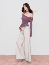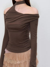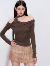 Asymmetric Off-Shoulder Knit T-Shirt