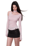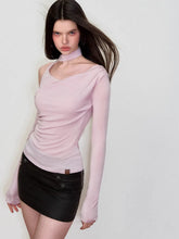 A statement knit top defined by an irregular off-shoulder cut and fluid ribbon detailing. Designed with a slim, body-hugging silhouette, this piece highlights the neckline and shoulders with a modern, fashion-forward attitude. The soft, stretchy knit fabric offers comfort while maintaining a refined drape, making it ideal for spring styling with both casual and elevated looks.