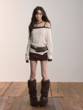 A chic and versatile knit top that blends softness with subtle edge. Designed with a contrast off-shoulder neckline and asymmetric hem, it creates a naturally draped silhouette that’s both relaxed and flattering. The button-accented trim adds texture and visual depth, while the mix of fabrics ensures comfort and stretch. Perfect for layering over bralettes or pairing with mini skirts and wide belts for a confident, modern street style.