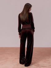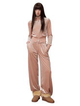 A refined athleisure two-piece set crafted in soft velvet fabric, offering a luxurious sheen and an ultra-comfortable feel. The relaxed sweatshirt pairs with streamlined jogger-style pants for a balanced silhouette that blends sportiness with elevated texture. Designed for autumn and winter, the set provides warmth without bulk, making it ideal for daily wear, lounging, or stylish casual outings. Subtle tailoring details ensure a flattering fit while maintaining ease of movement.