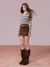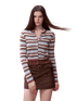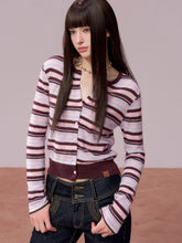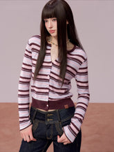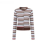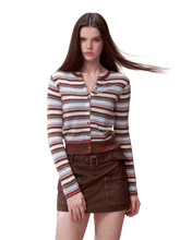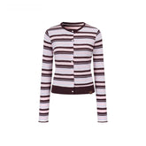 A modern striped cardigan designed with bold contrast color-blocking for a striking seasonal look. Crafted in a premium wool-blend yarn, it offers a soft, warm touch while maintaining structure and durability. The relaxed silhouette enhances comfort, making it an effortless layering piece for autumn and winter. Pair it with denim, skirts, or tailored trousers for a versatile, chic, and cozy everyday outfit.