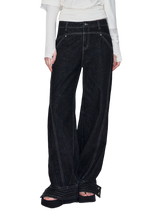 These statement denim jeans feature a relaxed straight-leg silhouette with a deconstructed patchwork design for a modern, fashion-forward edge. Embroidered pocket details add subtle visual interest and elevate the classic denim look. Designed with a loose yet structured fit, they offer comfort and versatility, making them an easy match for both casual tops and styled knitwear. A go-to spring essential for effortless, everyday styling.