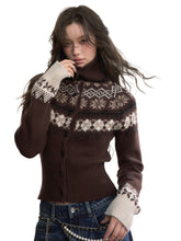 A refined Fair Isle-inspired heavy-knit cardigan featuring a high turtleneck design that exudes both warmth and sophistication. Crafted with intricate jacquard detailing, this piece showcases exquisite craftsmanship and a rich texture. The wool-blend composition ensures superior softness and insulation, making it an ideal layering essential for the fall and winter seasons. Perfect for creating effortlessly chic and cozy looks with a touch of timeless Nordic charm.