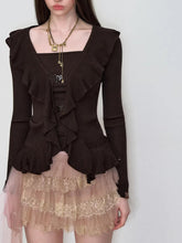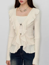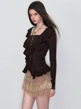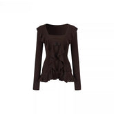 A refined knit top designed with a faux layered construction and subtle ruffle accents for a soft yet fashion-forward look. Featuring a flattering square neckline and a slim, waist-defining silhouette, this long-sleeve piece balances femininity with modern structure. The delicate layering effect adds depth while keeping the overall style clean and versatile, making it an easy spring essential for both casual and elevated styling.