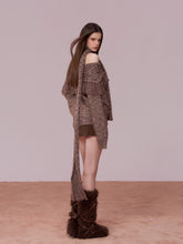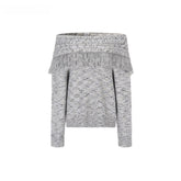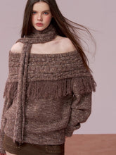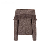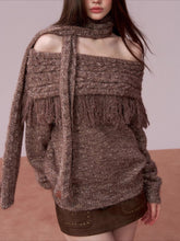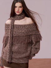 A fashion-forward two-piece knit set featuring an off-shoulder sweater paired with a coordinating scarf. Crafted in a melange yarn that adds depth and richness to the texture, the design incorporates artisanal fringe detailing for a dynamic, handcrafted aesthetic. The relaxed silhouette offers effortless drape, while the off-shoulder neckline enhances femininity and visual interest. Ideal for autumn and winter, this set delivers both warmth and statement style—wear together for a cohesive look or mix and match with other seasonal staples.