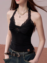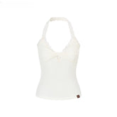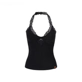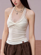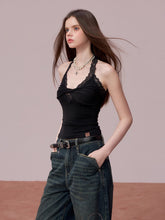This autumn–winter camisole features an elegant halter-neck silhouette with delicate lace splicing that enhances femininity and layering versatility. Crafted from a smooth, soft, breathable Tencel-blend knit with added lamb wool, it provides gentle warmth while maintaining a lightweight drape. The fitted cut accentuates the figure, making it a refined inner-layer choice for sweaters, jackets, or standalone styling with a sophisticated touch.